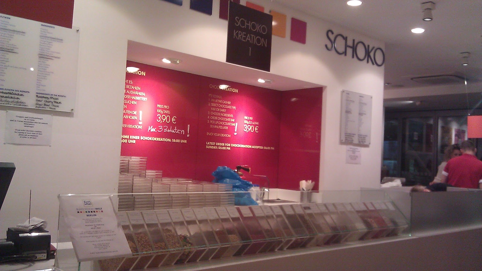 I found the Ritter Sport store! Here, you can make your own chocolate. You choose between dark or milk chocolate as a base, and then choose what you want on the inside like nuts, or what-have-you, and then in 30 minutes for almost 4 euros, you can have your own expensive, but one of a kind chocolate creation. Just with that alone made this place like 10x better than the M&M store in New York (sorry!). Plus, they have a giant wall of flavours > wall of multi-coloured uni-flavoured M&Ms. Just the other day I was telling myself that I was going to get all the Ritter Sport flavours (because I like to collect things) and I have a friend who likes to eat chocolate, and he warned me not to go all hahaha-crazy about it. Well, I can give up now because all the flavours are in one place and the catch is no good without the chase. Plus, there are waaay more flavours than I thought! But rest assured, I didn't leave empty handed, I still have a giant grab bag of random flavours for you.
